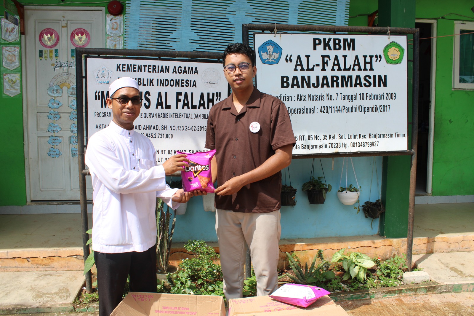 Penyaluran bantuan ini diserahkan langsung oleh perwakilan utusan Foodbank of Indonesia, Kakak Selamat Riyadi. Kedatangan beliau disambut hangat oleh pihak madrasah dan para siswa yang antusias menerima paket snack bergizi tersebut.