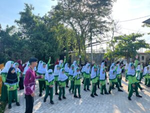 Antusiasme terlihat jelas di wajah seluruh peserta. Kegiatan ini diikuti oleh seluruh siswa dan siswi dari berbagai tingkatan kelas, dan bahkan guru-guru di MI Plus Al-Falah turut serta aktif bergerak mengikuti irama.